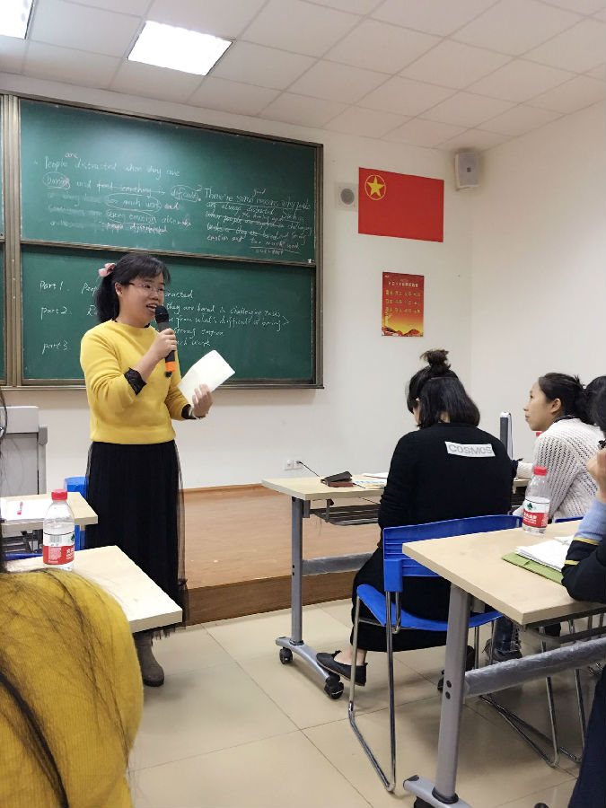 课后两位老师阐述了自己的备课思路。工作室助理张敏老师对这两堂课进行了综合点评。秀外慧中温文尔雅的张老师从更高的高度和更专业的角度肯定了这两堂课的优点,也提出了一些建议,如续写和概要写作时,我们更应从学生的角度思考,并且关注写作的速度、outline大纲、思维导图、topic sentences,让在座的老师们如沐春风,豁然开朗。