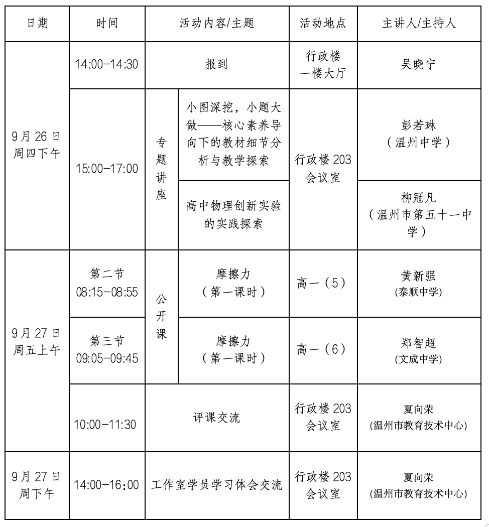 关于举行温州市夏向荣“名师送教”工作室第04次活动的通知