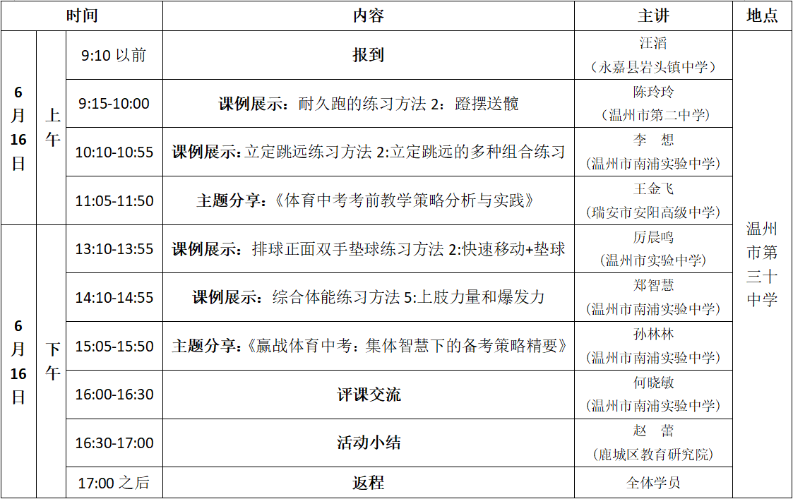 为了进一步贯彻落实《义务教育体育与健康课程标准(2022年版)》课标精神,交流教育教学经验,探讨体育教学方式方法的改革与创新,提高初中体育与健康学科的课堂教学质量,促进和夯实中考体育项目专项教学工作,创造校际间相互交流经验的机会,特举办鹿城区初中体育名师工作室关于开展“体育中考专题”联合研讨暨“送教下乡”活动。
